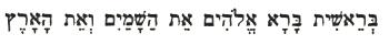 There is probably no account of human evolution so open to misinterpretation as this record known as Genesis, the description of the creation of the world in six or seven days. When the person of today calls to life in his soul, in any language familiar to him, the words In the beginning God created the heaven and the earth, they convey to him scarcely a faint reflection of what lived in the soul of an ancient Hebrew who allowed the words to work upon him. It is not in the least a question of being able to replace the old words by modern ones; it is much more important that we should have been prepared by Anthroposophy to feel at least something of the mood which lived in the heart and mind of the Hebrew pupil of old when he brought to life within himself the words: B'reschit tiara Elohim et haschamayim w'et ha'arets. [See Figure 1, below.] A whole world lived while such words were vibrating through his soul.
